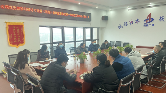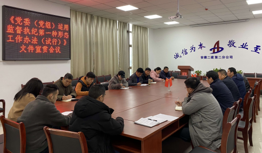 近期,為認(rèn)真落實(shí)全面從嚴(yán)治黨主體責(zé)任和監(jiān)督責(zé)任,踐行“四種形態(tài)”,強(qiáng)化“第一種形態(tài)”運(yùn)用。安徽二建公司所屬各單位組織學(xué)習(xí)了《黨委(黨組)運(yùn)用監(jiān)督執(zhí)紀(jì)第一種形態(tài)工作辦法(試行)》。